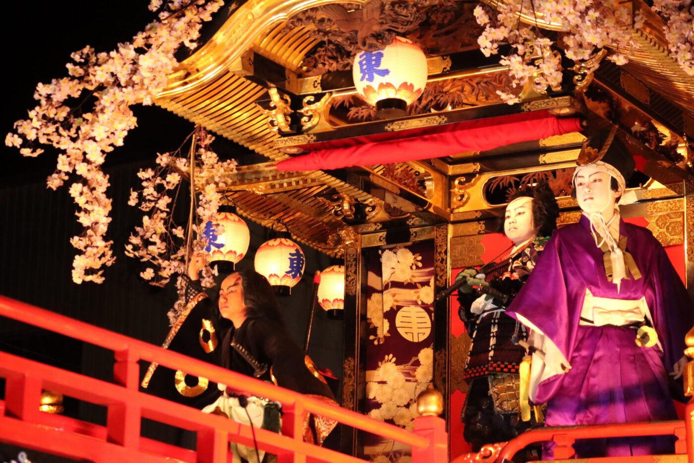 出町町内を子ども歌舞伎を乗せた曳山がまわります。