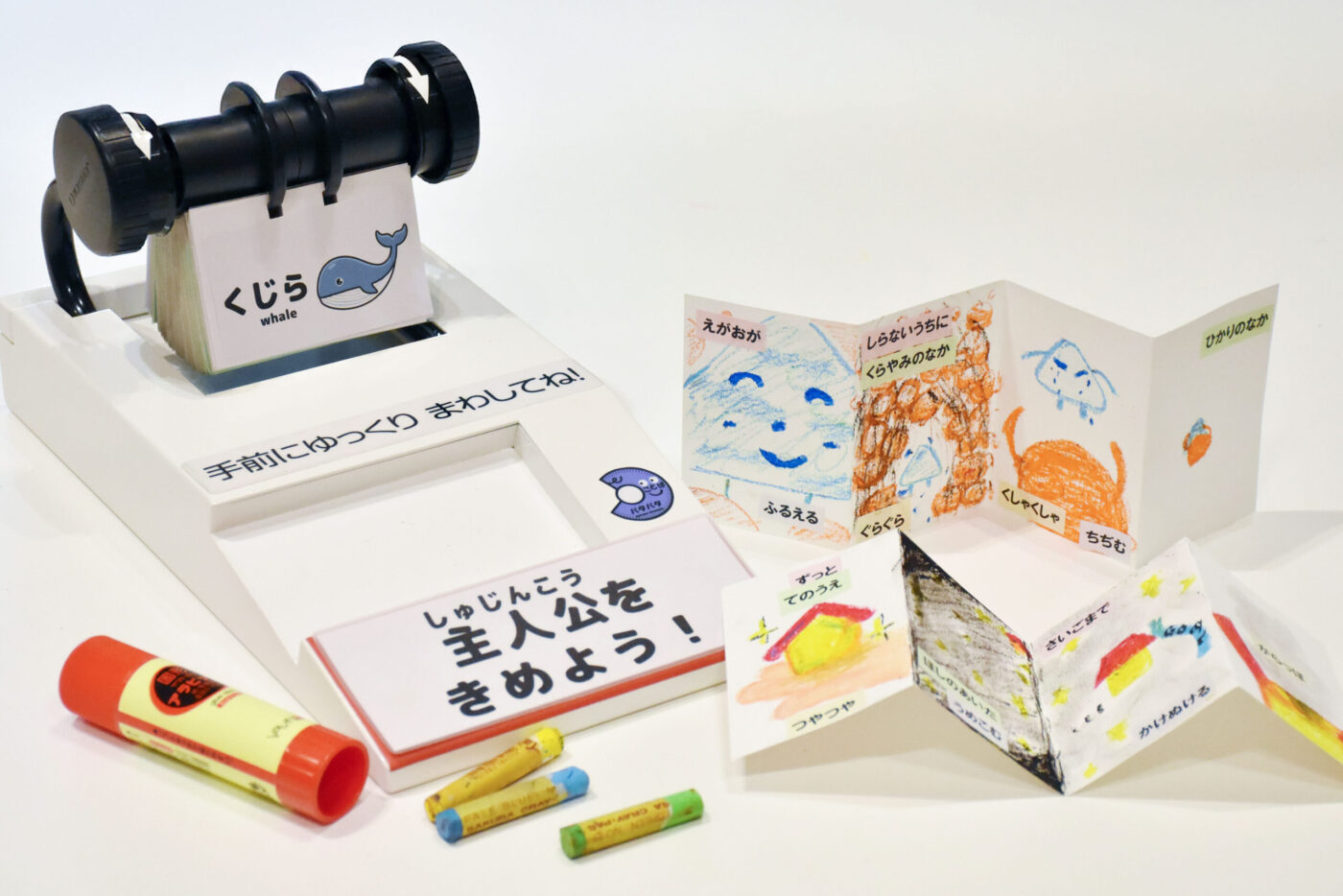 富山県美術館で開催の「谷川俊太郎 絵本★百貨展」関連イベント。ランダムに出てきたことばと絵を組み合わせて、自由に絵本をつくろう!