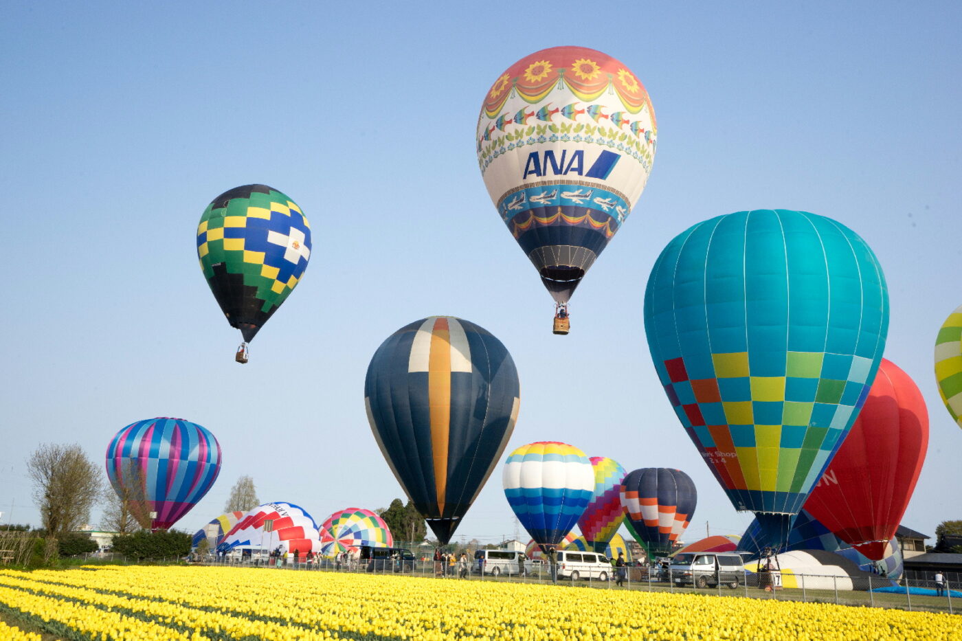 一斉に離陸する熱気球群の迫力と、カラフルに染められた華麗な春空。