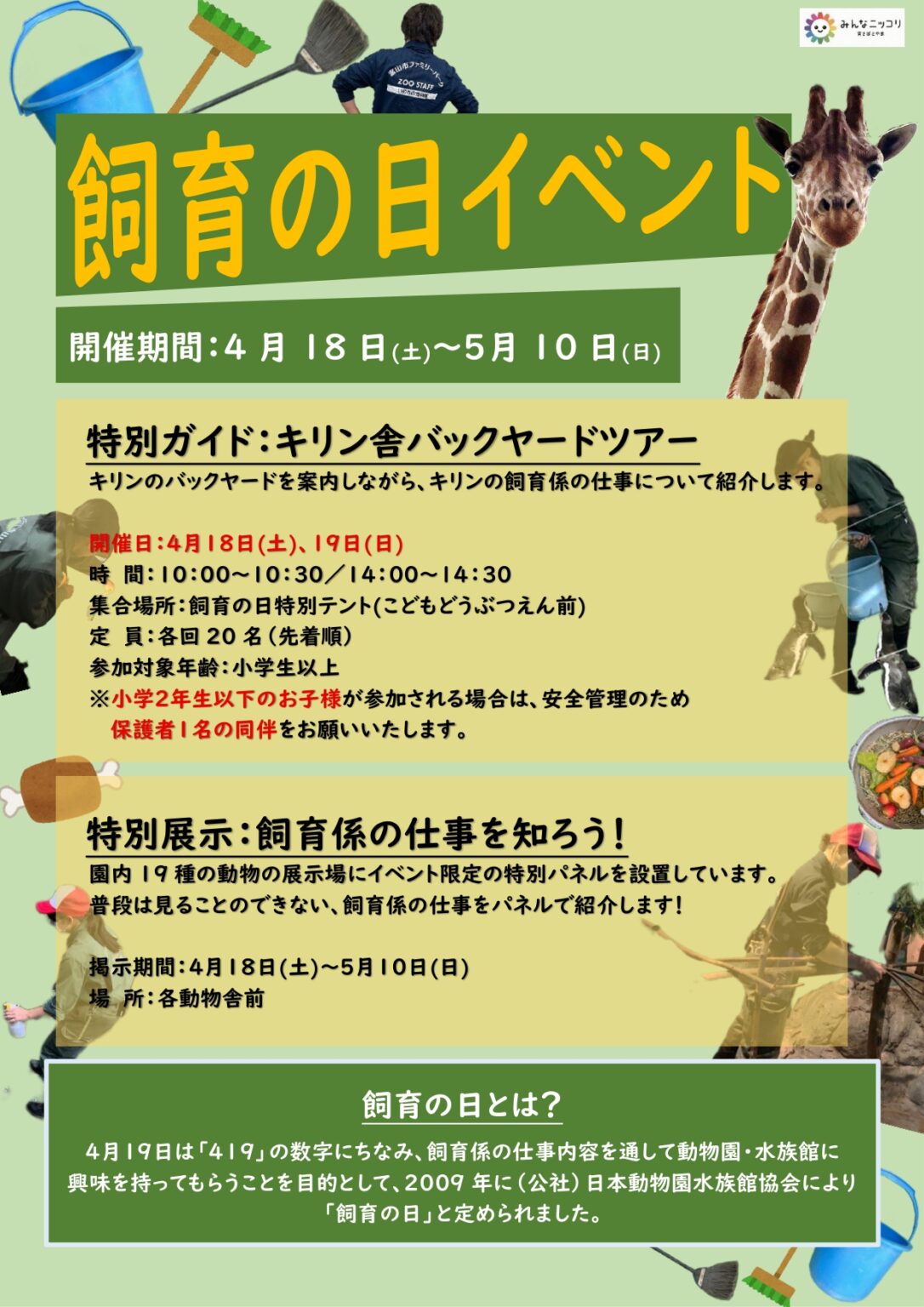 4月19日は飼育(419)にちなみ、飼育係の仕事内容を通して動物園や水族館に興味を持ってもらう日として制定されました。