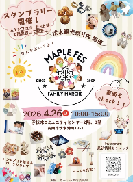 開催前 高岡市 0〜2歳 3〜6歳 小学1〜3年 小学4〜6年 4月26日(日) 10時〜15時 伏木観光祭りwith めーぷるFES 伏木コミュニティセンター フードやハンドメイドなど素敵なお店が勢揃い♪豪華景品が当たる?!スタンプラリーも実施★ https://www.instagram.com/maple_fes/