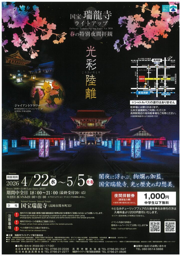 ¥/夜間拝観券(運営協力費)1,000円 ※中学生以下無料