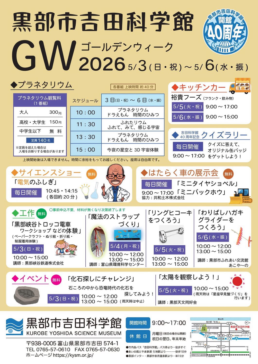・5月3日(日・祝)黒部峡谷トロッコ電車 ワークショップなどの体験