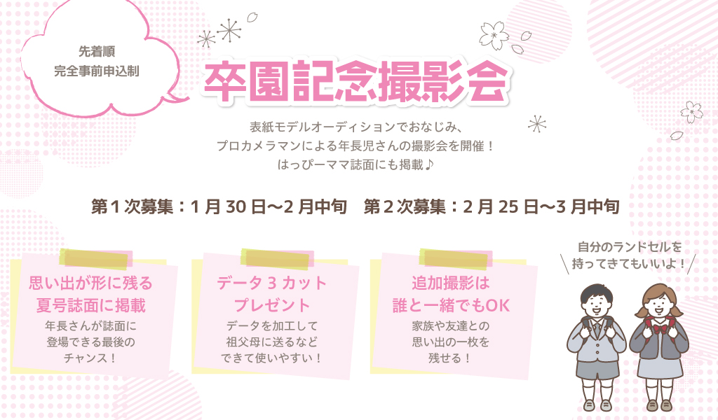 - 進級や入学にあわせて楽しい思い出をつくろう!
