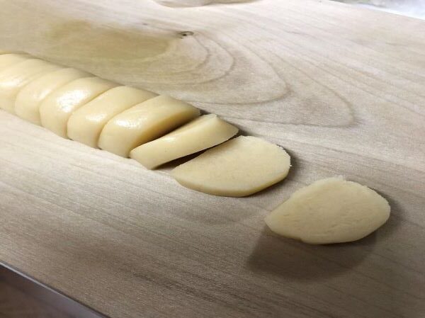 棒状の生地を1センチ幅にカットします。カット時に怪我をしないように気を付けましょう。カット後はアルミホイルを敷いた天板に並べ、オーブントースターで約5~10分焼きます。焼き色がついたら加熱をやめるのがポイントです。