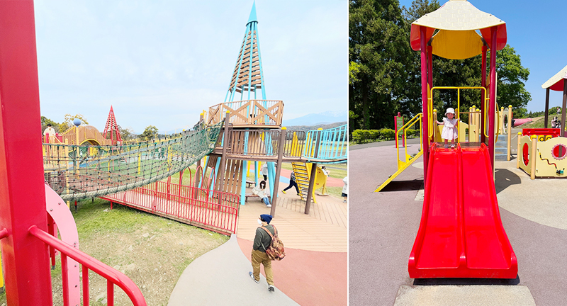 大型遊具やトンネルなど子どもが楽しめる遊具がたくさんあります。大型遊具は一部柵がない部分もあるので小さなお子さんが使用する際は見守ってくださいね。