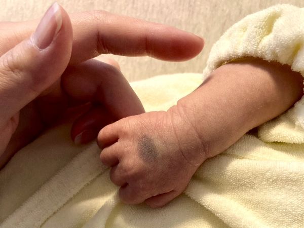 赤ちゃんが下りてこなかったのは、へその緒をたすき掛けしていたからだと、生まれてからわかりました。