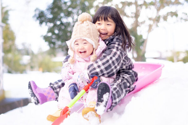 3、4歳くらいになれば、そりすべりのスリルと爽快感を楽しいと感じられる子が多いように思います。