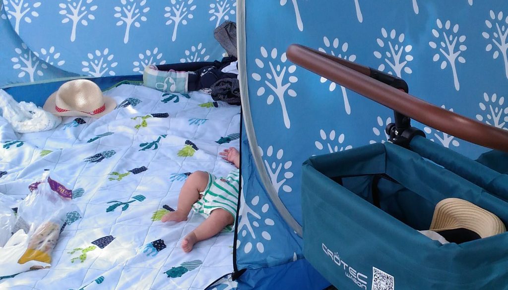 屋外で日陰がない場合はテントなどを使って自分たちで対策する工夫も必要かと思います。