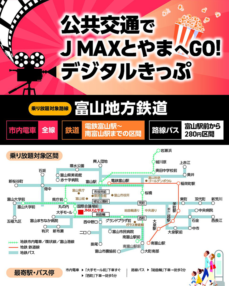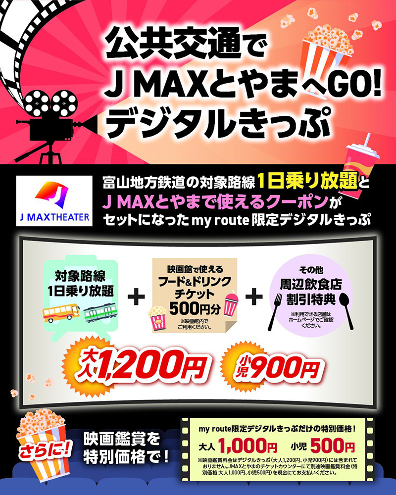 そんな「my route」に、富山地方鉄道の市内電車 全線、バス・鉄道線の一部区間が乗り放題とJ MAXとやまで使えるクーポンがセットになったお得なチケットが発売されました!