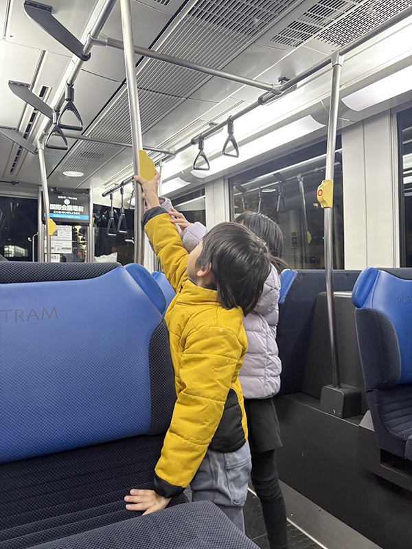 子どもたちも、車とは違う外の景色や、電車ならではの雰囲気にワクワクしている様子でした。