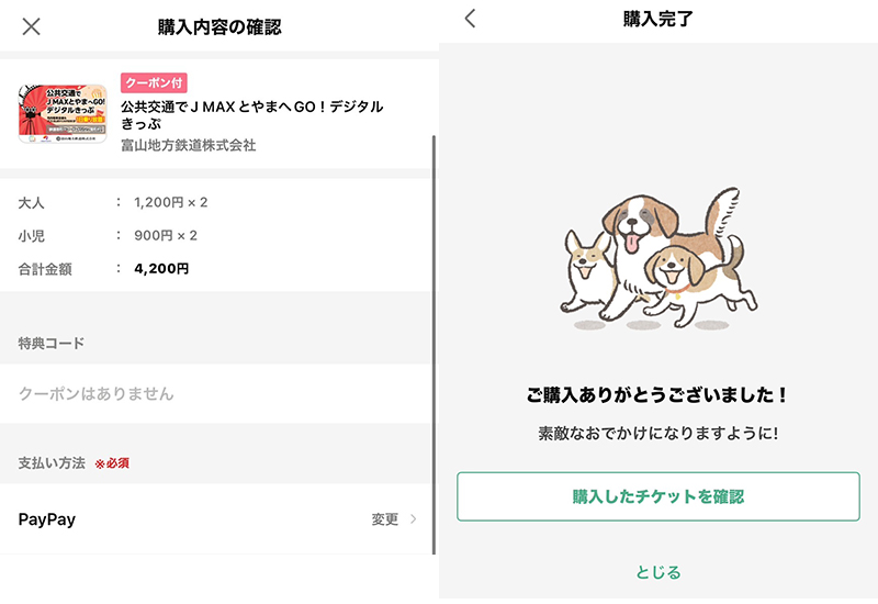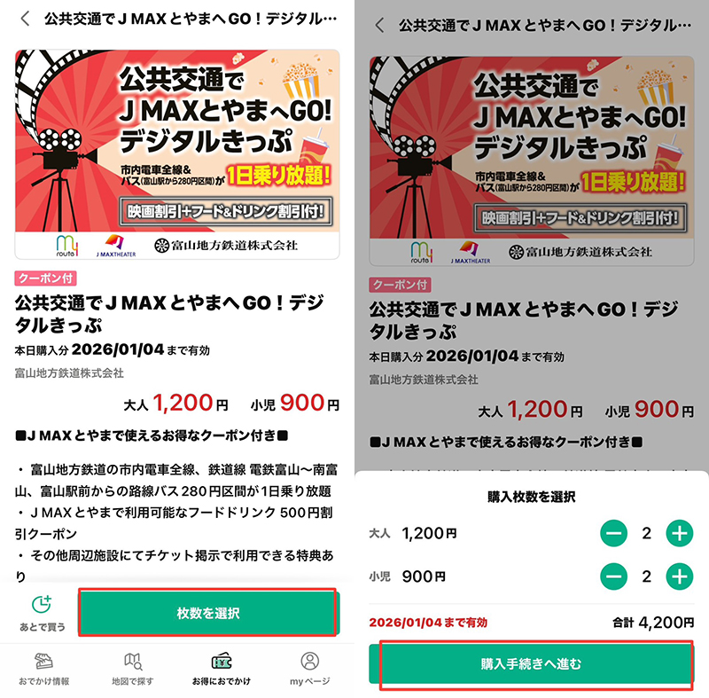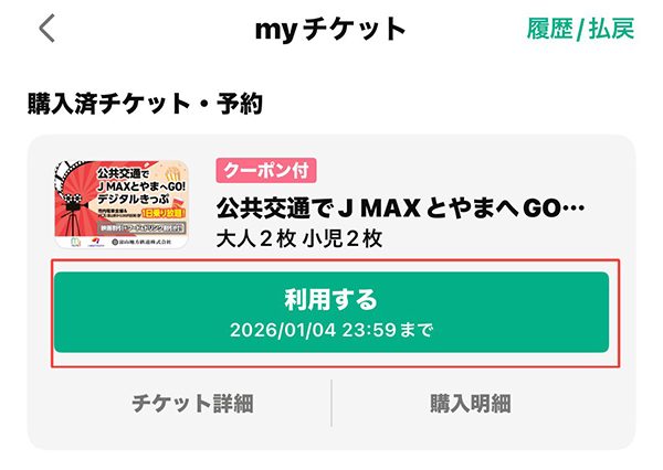 アプリをダウンロードしたら、「公共交通でJ MAXとやまへGO!デジタルきっぷ」を購入します。
