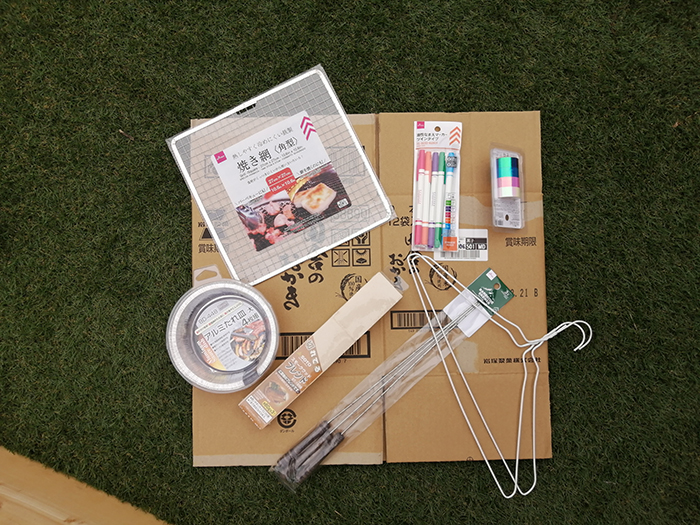 串、網、アルミ皿、飾り用のマスキングテープやチャッカマン、文房具などは100均で購入できました!